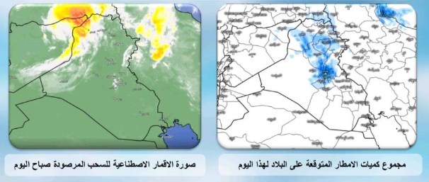 غائم جزئي يتحول الى غائم على فترات في المنطقتين الوسطى والشمالية يصحبها هطول زخات مطر خفيفة الى معتدلة الشدة خلال النهار في أماكن متفرقة مع هطول ثلجي خفيف على المرتفعات الجبلية شمال شرق البلاد. بينما يكون الطقس صحو مع بعض الغيوم في المنطقة الجنوبية.