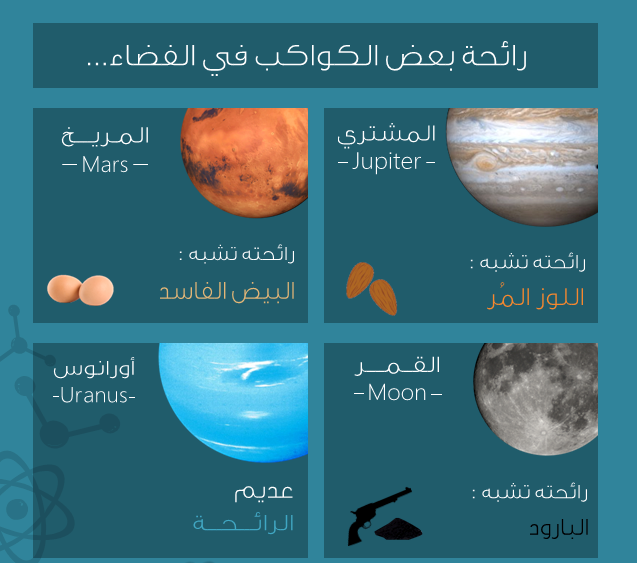 رائحة بعض الكواكب في الفضاء استنادا على المركبات الكيميائية المتطايرة فيها...