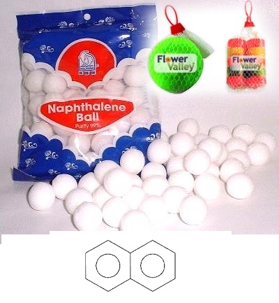 الاسفنيك المستخدم كمعطر للحمامات وكذلك لحماية الملابس هو عبارة عن مركب كيميائي عضوي اروماتي يتكون من حلقتي بنزين مدمجة اسمه الشائع هو النفثالين ويتسامى في درجة حرارة الغرفة (التسامي هي عملية تحول المادة الصلبة الى بخار دون المرور بالحالة السائلة) ويكون بخاره ساما للحشرات واليرقات الاكلة للملابس وحماية البيوت البلاستيكة الزراعية من الافات الحشرية وقديما استخدم لقتل الديدان الطفيلية للمواشي عن طريق اطعامها للنفثالين.