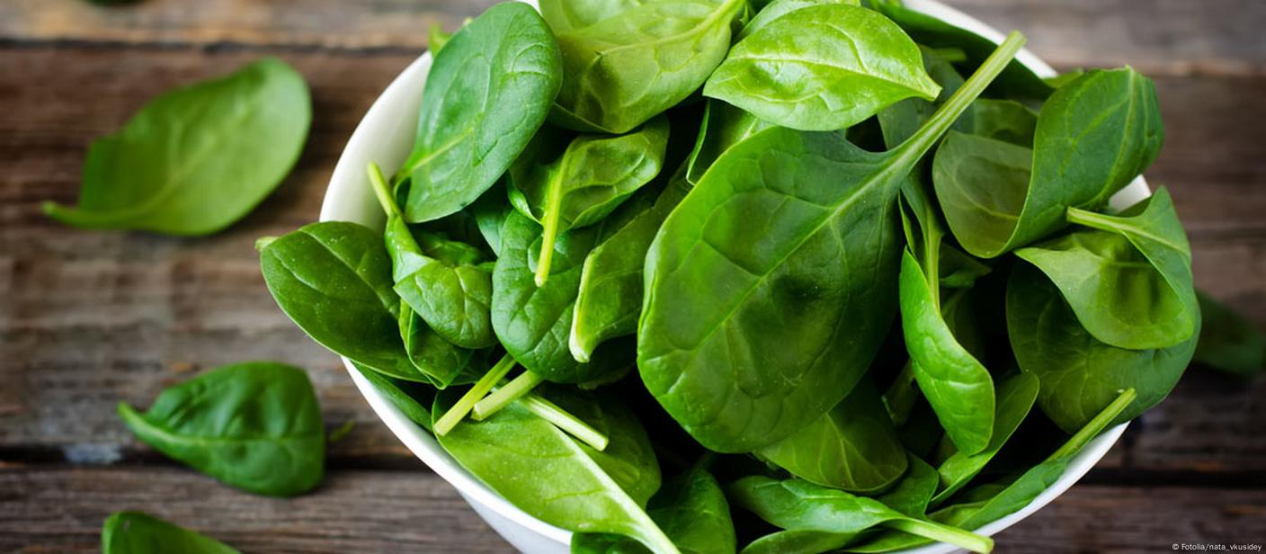 السبانخ تحتوي على نسبة عالية من الحديد والمغنيسيوم واللوتين وهي عناصر تدعم إنتاج الطاقة وصحة الدم والعينين.