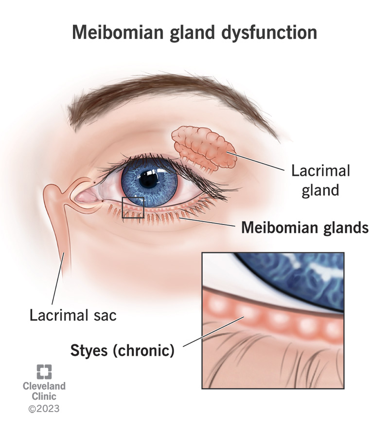 هي غدد دهنية تقع على طول حواف الجفون العلوية والسفلية وتفرز زيتاً يشكل الطبقة الدهنية للدموع، يحمي العين من الجفاف ويمنع تبخر الدموع بسرعة، ويعد انسدادها أو ضعفها سبباً شائعاً لجفاف العين والتهابات الجفون.