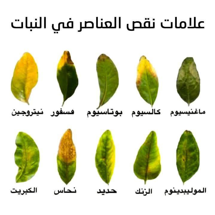 بعض علامات نقص العناصر في النبات