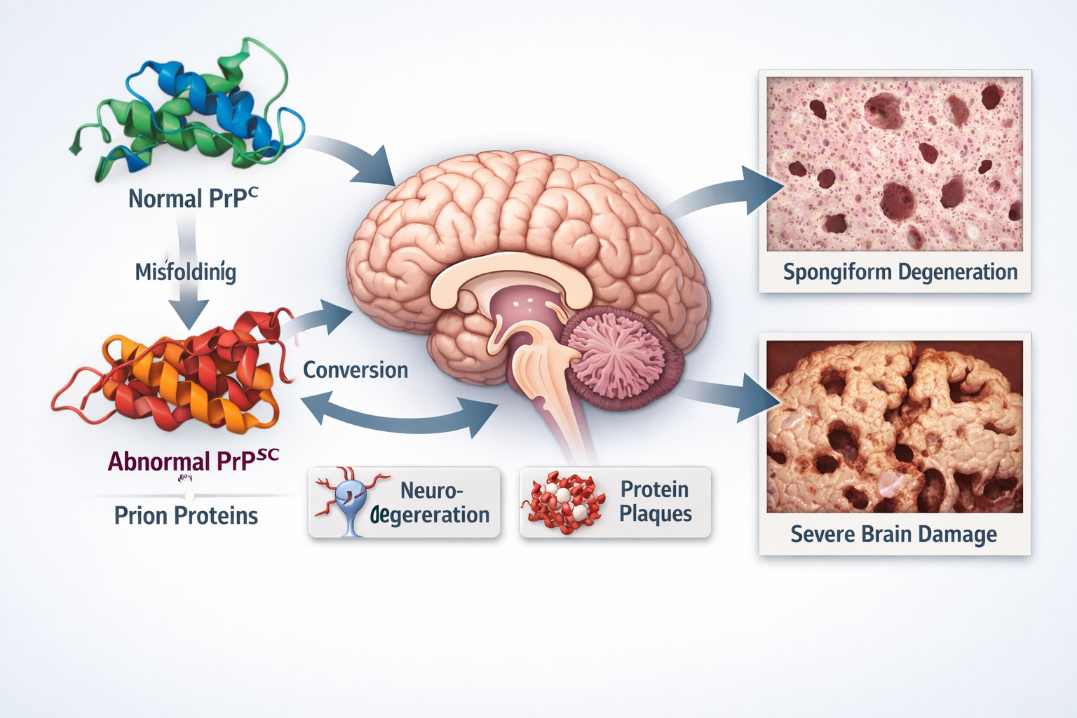 هي عوامل معدية غير تقليدية تتكون من بروتينات غير طبيعية ولا تحتوي على أي مادة وراثية. تسبب المرض عبر تحفيز التحول البنيوي للبروتين الطبيعي الموجود في الدماغ (PrPᶜ) إلى الشكل الشاذ المرضي (PrPˢᶜ) الذي يتراكم تدريجياً مسبباً تنكساً إسفنجياً وتلفًا شديداً في الأنسجة العصبية. وتؤدي هذه العملية إلى مجموعة من الأمراض العصبية النادرة والخطيرة مثل مرض كروتزفيلد–جاكوب و جنون البقر. وقد تنشأ الإصابة بالبريونات إما بسبب عدوى أو نتيجة طفرات وراثية أو بشكل تلقائي.
