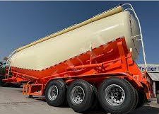 الصورة تُظهر مقطورة نقل مواد سائبة ذات قاع على شكل حرف V، وهي نوع من الحاويات الهندسية المصممة لنقل الحبوب أو الإسمنت أو المساحيق الصناعية. يعتمد تصميمها على مبدأ فيزيائي مهم في ميكانيكا المواد الحبيبية؛ فالمواد مثل القمح أو الرمل لا تتصرف كسائل حقيقي، لكنها تستطيع الانسياب عندما تتغلب قوة الجاذبية على الاحتكاك بين الحبيبات. لذلك يُصمَّم القاع بسطحين مائلين يلتقيان في خط سفلي يحتوي فتحات تفريغ. هذا الميل يولّد مركبة قوة تدفع المادة نحو الأسفل باستمرار،