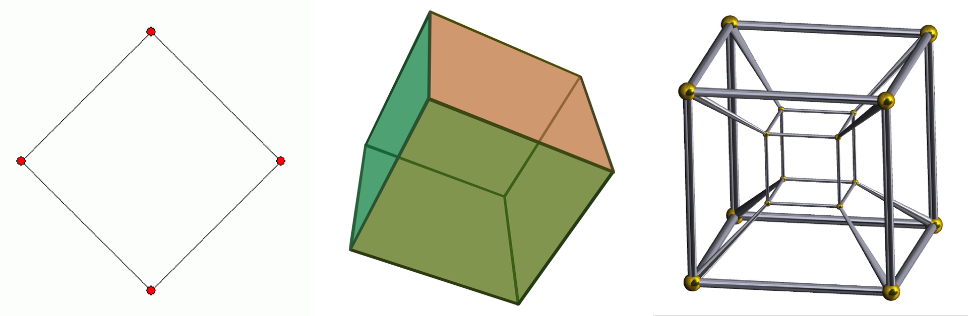 مربع في البعد الثنائي والثلاثي والرباعي.