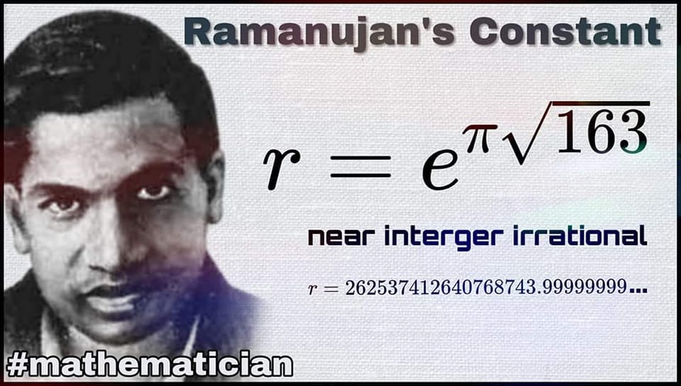 يعتبر ثابت رامانوجان أحد أكثر الثوابت إثارة للاهتمام في علم #الرياضيات. الشيء المثير للاهتمام هو أنه قريب من عدد غير نسبي ، وقريب جدا من عدد صحيح حيث أن هناك فقط اثنا عشر مرتبة بعد الفارزة جميعها الرقم ٩ . والأكثر إثارة للاهتمام هو أنه الرقم الأخير في السلسلة الذي يمتلك مثل هذه الخصائص لشكل رياضي معين لـ e ^ {π√x}. الشكل الرياضي فريد من نوعه ، فهو يجلب اثنين من أكثر ثوابت الرياضيات استخدامًا "e" و "π" والجذور التربيعية للاقتراب من عدد صحيح