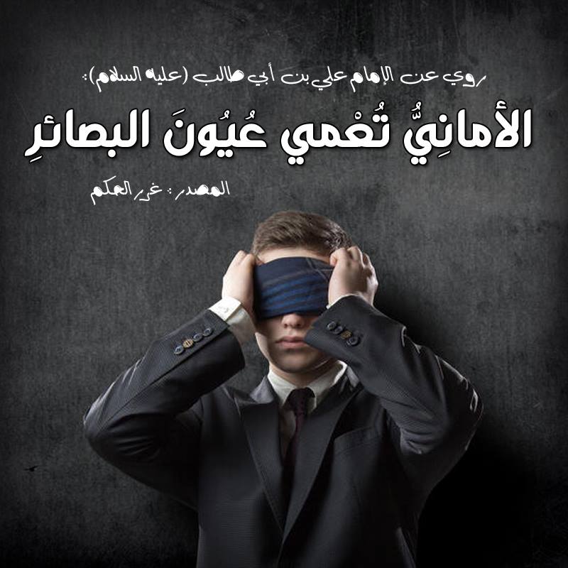 الإمام عَلِيِّ بْنِ أَبِي طَالِبٍ ( عليه السَّلام ) أنهُ قَالَ : الأمانِيُّ تُعْمي عُيُونَ البصائرِ .
