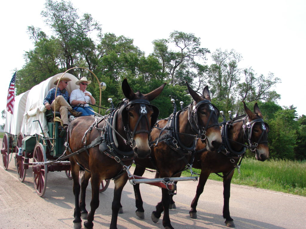 On wagon trains across the plains, mule could cover 30 miles a day, while wagons drawn by horses and oxen could average only five miles a day. Thousands of mules were used to pull the pioneer’s wagons westward, and when families found a place to settle and build their homesteads, the mules were there to haul the logs for the houses.
