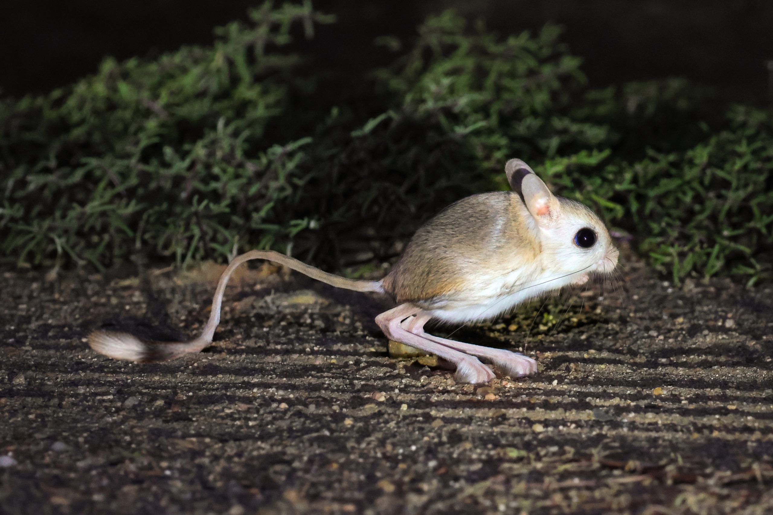 Cautiously, these animals proceed through the desert, using adaptations to outmaneuver predators and make due with little resources. If you walk along a trail or road at night, you are likely to see some of these rodents scurry or bound across your path.