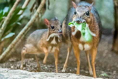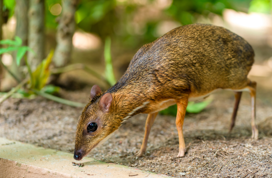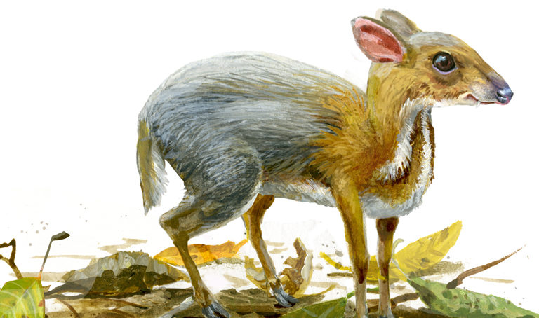 There are nine species of the chevrotain in South and Southeast Asia, and one species in central Africa. Chevrotains are the smallest ungulates in the world.