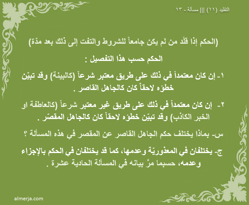 | ما معنى عبارة (قد لا تكون فتواه منجزة في حقه فعلا) ؟؟؟ | أعجبني |