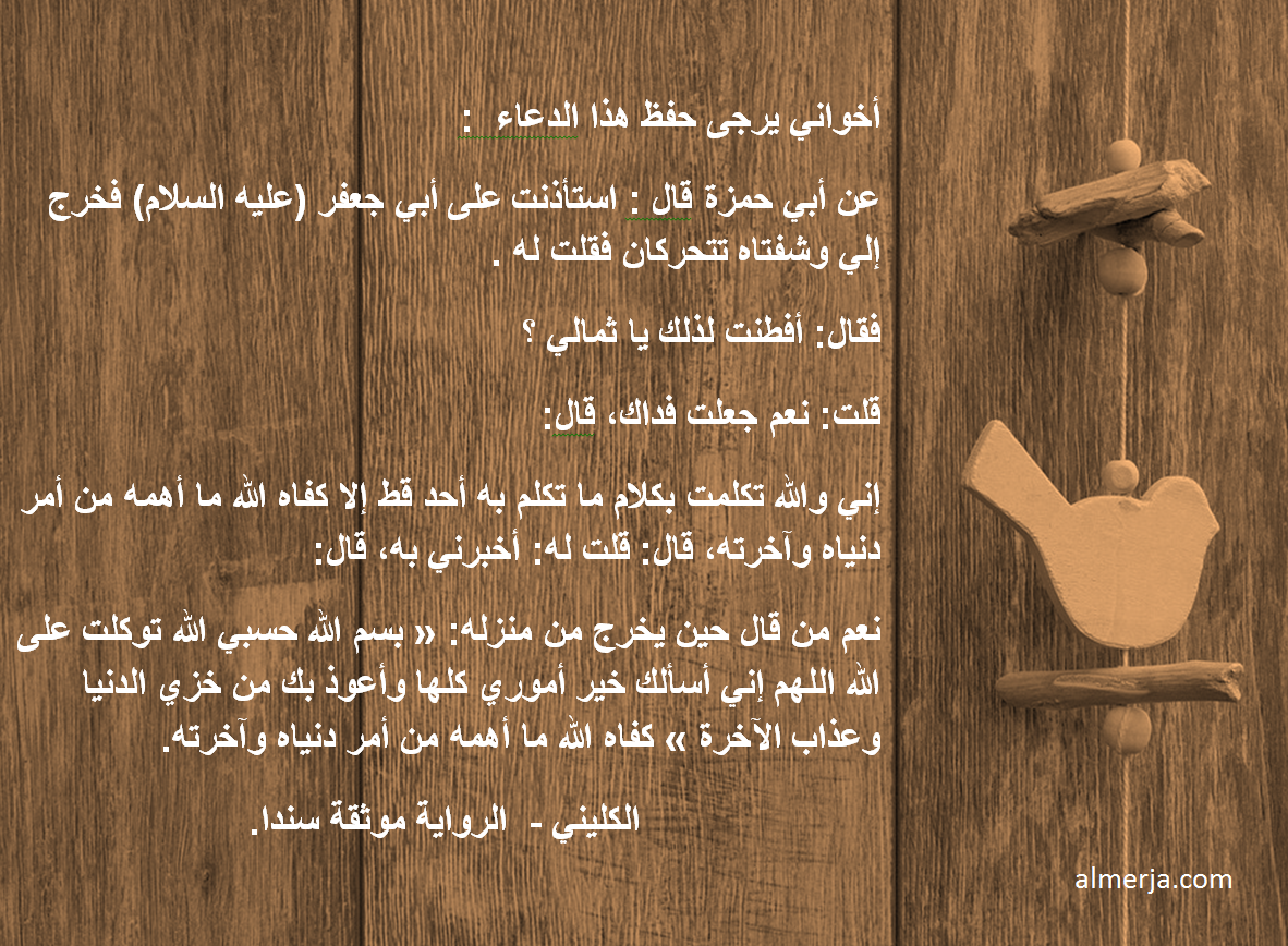 | (فخرج الي وشفتاه تتحركان فقلت له) .... ماذا قل له ؟؟!! فأنت انتقلت مباشرة لكلام الامام سلام الله عليه .... وشكرا لنقلك لنا هذا الدعاء بعد اتمام الرواية . | أعجبني |