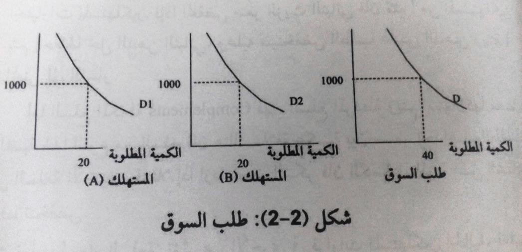 ويجري اشتقاق طلب السوق من خلال الجمع الأفقي لجميع منحنيات طلب الأفراد على السلعة .