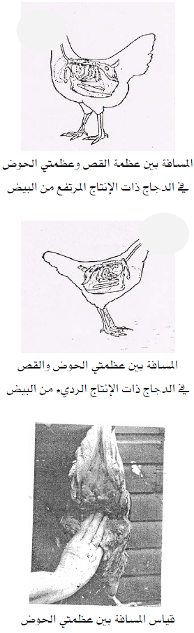 6. عظمتي الحوض في الدجاجة مرتفع الإنتاج يمكن ثنيها بسهولة ويسمحا بمرور البيضة ذات الحجم الكبير.