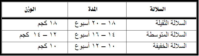 ثانيا: إنتاج اللحم من الذكور الزائدة عن حاجة التربية في القطيع: يتم تسمين الذكور الزائدة كما في الجدول التالي: