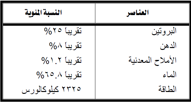 2. القيمة الغذائية عالية خاصة من البروتين وفيتامين ب۱، ب۲.