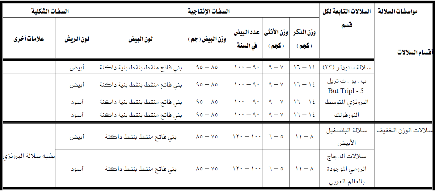 مواصفات سلالات الرومي (الصفات الإنتاجية والشكلية):