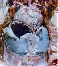 4- إصابة كيس المحي مما يؤدي إلى نفوق الصوص قبل الفقس.