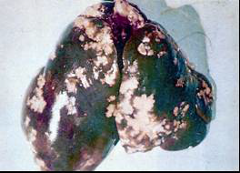2- إصابة الأكياس الهوائية مما يؤدي إلى امتلائها بمواد متجبنة صفراء اللون.