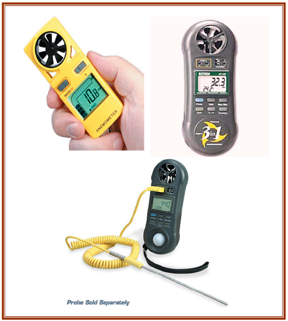 شكل رقم (8) بعض اجهزة قياس سرعة الهواء والحرارة والرطوبة المستخدمة داخل حظائر الدواجن