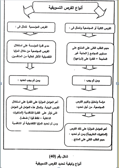 ويوضح الشكل التالي انواع الفرص التسويقية وكيفية تحديدها :