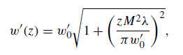 where w' (z) is the beam radius at z and w'0 is the radius at the waist of the multimode beam.