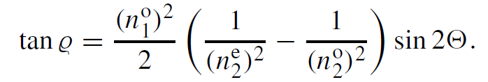 Therefore, the direction of power flow (Poynting vector) of the fundamental and second harmonics will not be completely collinear but occur at a small angle. For a negative uniaxial crystal and type-I phase-matching, this angle is given by