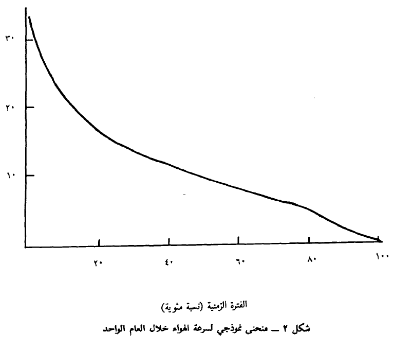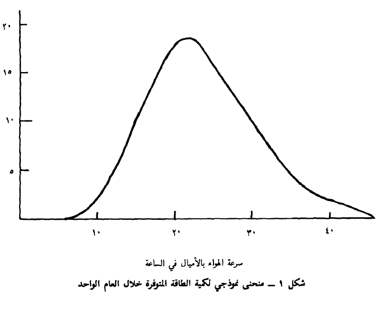 ومن أجل الحصول على كمية الطاقة المتوفرة في الهواء في منطقة ما والتي يمكن الاستفادة منها في ذات الوقت يلجأ المختصون في العادة الى رسم منحنيات تمثل العلاقة بين سرعات الهواء المختلفة وفتراتها الزمنية، وانطلاقاً من هذا المنحنى يتم رسم منحنى آخر يمثل كمية الطاقة المتوفرة على السرعات المختلفة على امتداد فترة القياس. ان المنحنى الأخير ذو أهمية خاصة يستطيع من خلاله الشخص المختص أن يحصل على فكرة عامة عن كمية الطاقة المتوفرة وعن مجال سرعات الهواء التي تعطي أفضل النتائج، واعتماداً على هذه المعلومات يستطيع المختص تحديد الخطوط العريضة التي سيعمل ضمنها أثناء عملية التصميم . ويبين الشكلان (١ ) و(٢) نماذج توضيحية لهذه المنحنيات.