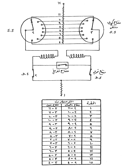 ان مفاتيح التحويل كما في شكل (1) ، يحتوي المحول في هذه الحالة على عدد 15 خطوة ، يمكن الحصول عليها بأستخدام عدد 2 مفتاح كهربي منتقى (Selector Switch) وعدد 2 مفتاح تحويل (Diverter Switch) يوجد ترابط ميكانيكي بين مفتاح التحويل ومفتاح كهربي منتقى، الجدول المرفق يوضح وضع المفاتيح المقابل لكل خطوة من خطوات المحول.