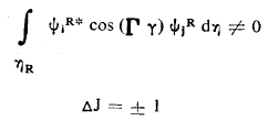 b) - في حالة اهتزاز جزئية XY يوجد عزم الإنتقال الإهتزازي حسب oz. وقاعدة الاصطفاء الدورانية نحصل عليها من العلاقة: