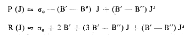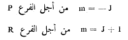 فالسلسلة المعرفة ب 1 + = ΔJ تدعى الفرع R والمعرفة 1 - = ΔJ تدعى الفرع P —الاعداد الموجية التابعة لهذا الفرعان تعطى بالعلاقتين :