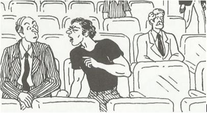That evening the same young man was at a movie when another man came in and sat next to him in the dark. When the lights went on, the young man saw that his neighbor was the doctor who had examined him earlier. Immediately he said, "Excuse me, ma'am, but does this bus go to Main Street?"