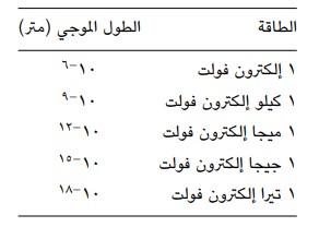 جدول 3-1: الطاقة والأطوال الموجية التقريبية.