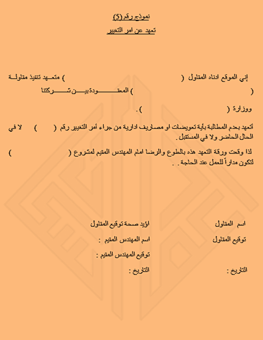 نموذج رقم ( 5 ) – تعهد عن أمر التغيير