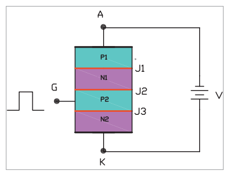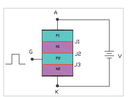 إن حقن تيار (قدح) على طرف البوابة المتصلة إلى منطقة الوصلة إل (المنحازة عكسيا) يعمل على تقليل مقاومتها، حيث تسمح بمرور التيار من المصعد إلى المهبط عند جهد انهيار أمامي اقل من جهد الانهيار الأمامي الاسمي، ويتناسب تيار البوابة عكسيا مع جهد الانهيار الأمامي.