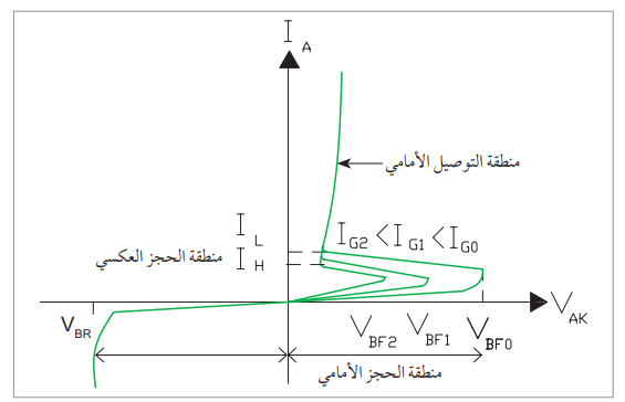 ويعبر عن قيمة تيار البوابة اللازم لقدح الثايرستور من منطقة الحجز الأمامي إلى منطقة التوصيل الأمامي ويبين الشكل (6) منحنى الخصائص للثايرستور.