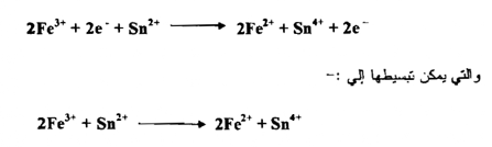 صف التفاعل الذي يجري بين Sn+2, Fe+3