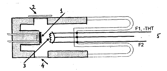 1- مصعد. 2- مرشح 3- فتيل 4- نافذة من البريليوم 5- التجميع في بؤرة