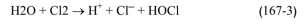 ب - الكلور وهيدروكلوريد : يعد التلوث بغاز الكلور Cl على نطاق ضيق ومحلي. استخدم غاز الكلور كغاز سام في الحرب العالمية الأولى (حيث كان أول غاز يستخدم لهذا الغرض. يستخدم الكلور حالياً، وبشكل واسع، في صناعة البلاستيك، ومحطات معالجة المياه كمعقم بالإضافة لاستخدامه كقاصر Bleach. لذلك فإن إمكانية تحرر الكلور إلى الغلاف الجوي يمكن أن تأتي من مصادر متعددة. وغاز الكلور سام نسبياً لجسم الانسان ومخرش للأغشية المخاطية. ويصنف ضمن الغازات الفعالة جدا ومادة مؤكسدة قوية. ينحل غاز الكلور في قطيرات الماء في الغلاف الجوي، ليشكل حمض كلور الماء وحمض هيبوكلوريت Hypochlorous acid، كمادة مؤكسدة: