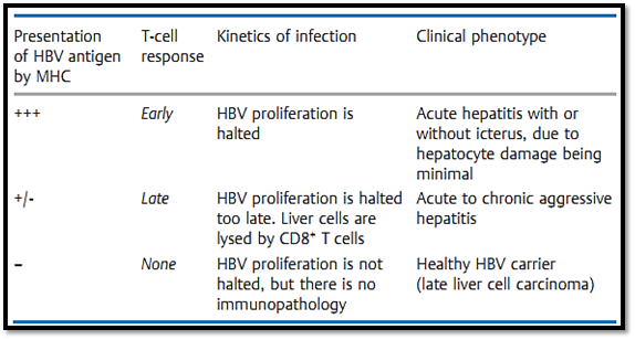 Table 2 Hepatitis B Virus (HBV) Infection. Inter-relations between Efficient Antigen Presentation by MHC Molecules, T-Cell Responses, Course of Infection, and Clinical Picture. Decreased Immunocompetence or Enhanced HBV Proliferation Shifts the Balance Towards an Unfavorable Outcome; Vaccination Shifts the Balance Towards a Favorable Outcome