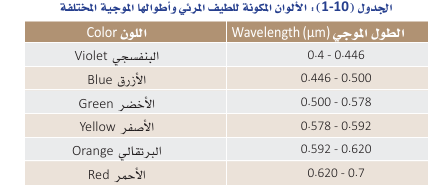 إن الضوء الذي تحسه أعيننا هو جزء من الطيف المرئي visible spectrum والذي يغطى جزء صغير بالنسبة لبقية الطيف الكهرومغناطيسي، حيث يوجد حولنا العديد من أنواع الإشعاع الغير مرئي invisible لأعيننا، ولكن يمكن تحسسه عن طريق أجهزة الاستشعار عن بعد والاستفادة منه. يغطي الطيف المرئي أطوال موجية تتراوح من حوالي 0.4 إلى 0.7 مايكرومتر، مكونات الضوء المرئي وأطوالها الموجية المختلفة يمثل اللون أو الضوء الأحمر أطول طول موجي بينما اللون البنفسجي يمثل أقصر طول موجي تمثل الألوان (الأزرق والأخضر والأحمر) الألوان الأساسية في الطيف المرئي حيث لا يمكن تشكيل هذه الألوان من الألوان الأخرى، بينما الألوان الأخرى يمكن تشكيلها من خلال الجمع بين الأزرق والأخضر والأحمر بنسب مختلفة، على الرغم أننا نرى ضوء الشمس بلون موحد أو متجانس، إلا انه في الواقع يتكون من أطوال موجية مختلفة من الإشعاع وخاصة الأشعة فوق البنفسجية والمرئية والأشعة تحت الحمراء، ويمكن رؤية الجزء المرئي من الطيف الكهرومغناطيسي عن طريق تمرير ضوء الشمس من خلال منشور زجاجي.