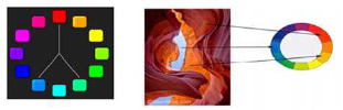 فإذا خترنا اللون الأحمر كلون أساسي، يمكن اختيار اللون البرتقالي كلون ثانوي.