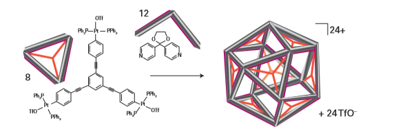 Figure 25.13 A cuboctahedron synthesized through self-assembly of two distinct building blocks. (Adapted from S. Leininger, et al., Chem. Rev., 2000, 100, 853.)