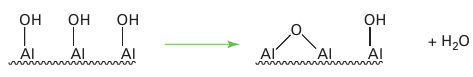 Key point: Surface acids and bases are highly active for catalytic reactions such as the dehydration of alcohols and isomerization of alkenes. When exposed to atmospheric moisture, the surface of γ-alumina is covered with adsorbed water molecules. Dehydration at 100 to 150°C leads to the desorption of water, but sur face OH groups remain and act as weak Brønsted acids: