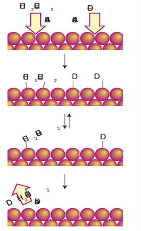 Figure 26.20 Schematic diagram of the stages involved in the hydrogenation of ethene by deuterium on a metal surface.