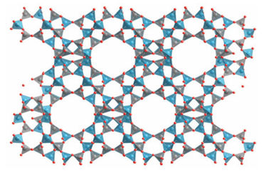 Figure 26.23 The zeolite ZSM-5 structure highlighting the channels along which small molecules may diffuse. Tetrahedra are SiO4 or AlO4.