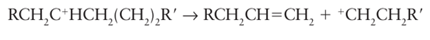 zeolite with a high Si content.5 The channels of ZSM-5 consist of a three-dimensional maze of intersecting tunnels (Fig. 26.23). As with other aluminosilicate catalysts, the Al sites are strongly acidic. The charge imbalance of Al3 in place of tetrahedrally coordinated Si(IV) requires the presence of an added positive ion. When this ion is H (Fig. 26.24) the Brønsted acidity of the aluminosilicate can be higher than that of concentrated H2 SO4 and is termed a superacid (Section 4.15); the turnover frequency for hydrocarbon reactions at these sites can be very high. Natural petroleum consists of only about 20 per cent of alkanes suitable for use in petrol (gasoline) and diesel with chain lengths ranging from C5 H12, pentane, to C12 H26 . Conversion of the higher molar mass hydrocarbons to the valuable lighter ones involves breaking the C-C bonds but also structural rearrangement of the hydrocarbons through dehydrogenation, isomerization, and aromatization reactions. All these processes are catalysed by a solid acid catalyst based on alumina, silica, and zeolites. Acidic clays and mixed Al2O3 /SiO2 were originally used for this process in the 1940s but since the 1960s these catalysts have been largely superseded by zeolites. The principal zeolite used for catalytic cracking is zeolite Y, in which the extra-framework cations have been replaced with lan thanoid ions, typically a mixture of La, Ce, and Nd. The mechanism of the catalytic cracking initially involves protonation of the alkane or alkene chain by the Brønsted acid sites in the zeolite pores followed by cleavage of the C-C bond in the -position to the C atom carrying the positive charge. For example
