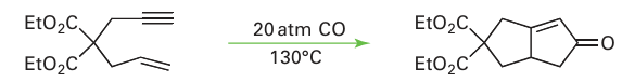 Mesoporous silicates discovered in the 1990s (Sections 24.13 and 25.9) have large ordered arrays of pores in the range 1 20 nm and generate very high specific surface areas (of over 1000 m2 g 1). The large pores allow larger molecules to undergo catalytic process es, although their acidity is weak compared with the zeolites. More importantly other catalytic centres, such as nanoparticles of metals, alloys, and metal oxides such as platinum or Pt/Sn, may be deposited within the mesostructured channels. As one example, Co deposited on the mesoporous silica support MCM-416 promotes the cycloaddition of alkynes with alkenes and carbon monoxide to produce cyclopentenones in the Pauson–Khand reaction: