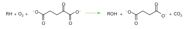 The Fe(III) enzymes are exemplified by protocatechuate 3,4-dioxygenase: the Fe is high spin and tightly coordinated by a set of protein ligands that includes two His-N and two Tyr-O, the latter hard donors being particularly suitable for stabilizing Fe(III) relative to Fe(II). The Fe (III) enzymes are deep red due to an intense tyrosinate-to-Fe (III) charge trans fer transition. The Fe (II) enzymes are exemplified by catechol 2,3-dioxygenase: the Fe is high spin and coordinated within the protein by a set of ligands that includes two His-N and one carboxylate group. The binding is weak, reflecting the low position of Fe (II) in the Irving–Williams series (Section 20.1). This weak binding, together with the difficulty of observing useful spectroscopic features (such as EPR spectra), has made these enzymes much more difficult to study than the Fe (III) enzymes. A particularly important class of Fe (II) oxygenases use a molecule of 2-oxoglutarate as a second substrate: