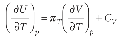 This equation is entirely general (provided the system is closed and its composition is constant). It expresses the dependence of the internal energy on the temperature at constant pressure in terms of CV, which can be measured in one experiment, in terms of α, which can be measured in another, and in terms of the quantity πT. For a perfect gas, πT = 0, so then